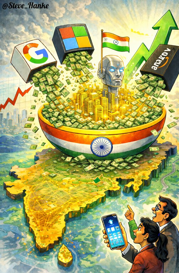 US tech giants like Google ($15B), Microsoft ($17.5B) and Amazon ($35B) are pouring capital into India’s AI infrastructure. At last, some foreign investment is headed for the world’s FASTEST GROWING ECONOMY.