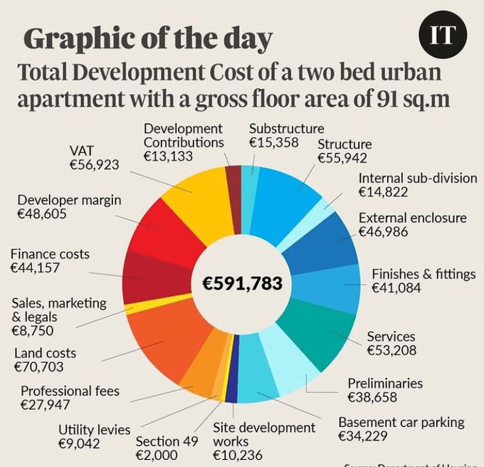 ⁩ – cost of a new 2 bed new apartment €591k according to government study by ⁦