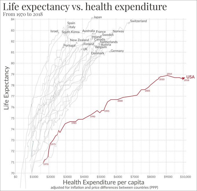 The United States has one of the highest per-capita expenditures for healthcare