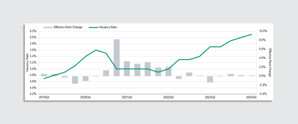 Moody’s year-end report shows that office vacancy reached 20.4% as of the fourth quarter of 2024, 3.6% higher than it was five years ago. That was before the pandemic, and much has changed for office real estate since then, with hybrid work becoming commonplace and companies adjusting their lease terms and office square footage to accommodate uncertainty and lower demand. This new record vacancy rate is a reflection of just how long-lasting the impacts of the pandemic have been on offices.