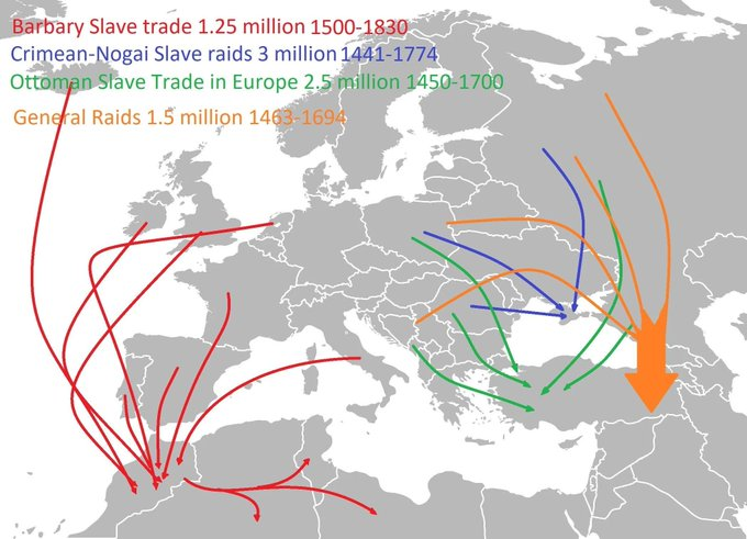The Barbary slave trade in which Europeans were abducted and sold into slavery from as far afield as Iceland and Ireland