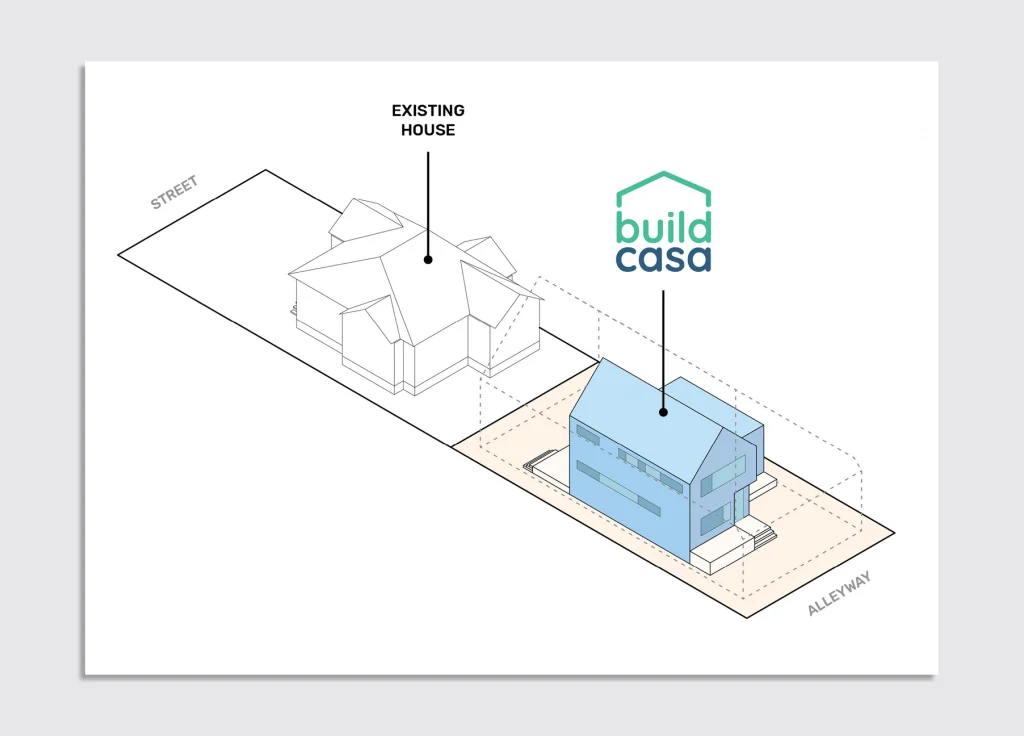 Part of the appeal of this model, says BuildCasa CEO Ben Bear, was the ease of land acquisition. Often, affordable housing, especially larger apartment projects, requires substantial land, which adds to the cost, and the dense collection of new units can trigger neighborhood and NIMBY pushback. By using surplus land in oversize lots, and spreading a handful of units across numerous sites, the new housing blends into the neighborhood, Bear says.