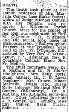Kilfenora, County Clare, IrelandDeath7 Jul 1961 (aged 66–67)