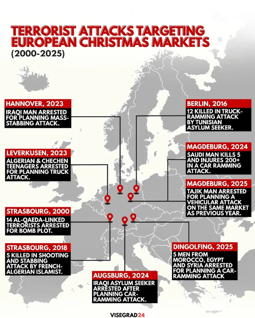 9 times foreigners carried out or tried carrying out mass-murders at European Christmas markets Without mass-immigration, Europeans would be able to visit Christmas markets in peace