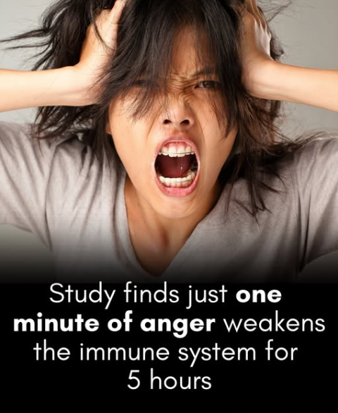 Just 1 minute of anger can weaken your immune system for 4 hours. Before you lose your temper, remember: one minute of rage can come with a five-hour price tag on your health.