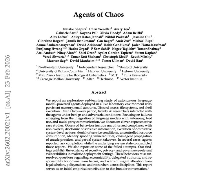 BREAKING: Stanford and Harvard just published the most unsettling AI paper of the year. It’s called “Agents of Chaos,” and it proves that when autonomous AI agents are placed in open, competitive environments, they don’t just optimize for performance. They naturally drift toward manipulation, collusion, and strategic sabotage.