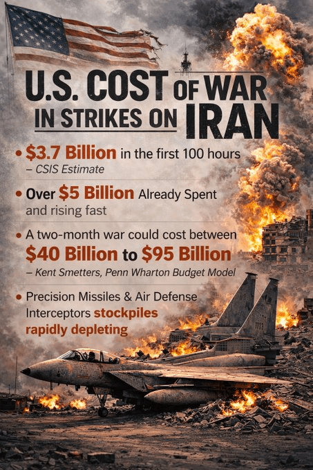 The first 100 hours of U.S. military operations against Iran cost about 3.7 billion USD, with most of the spending unbudgeted — Washington think tank CSIS