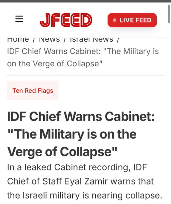 BREAKING. Multiple sources now reporting the IDF chief says Israeli military is on verge of collapse. If true, this is historic. Good riddance to the US-Israeli murderous empire. Welcome to a multipolar world of international law, human rights & diplomacy.