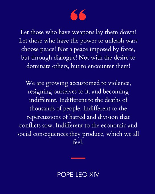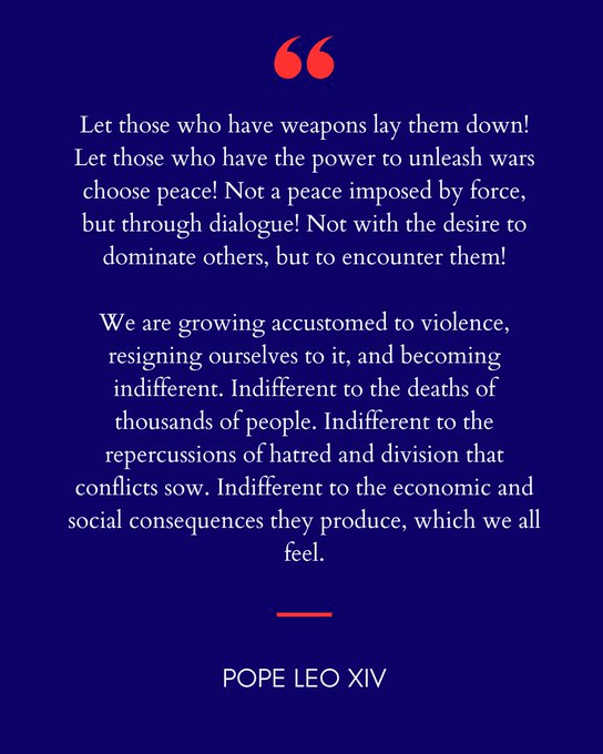 I agree with what Pope Leo XIV stated today in his first Easter speech: