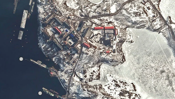 The UK MoD also released a satellite image on X of Russia’s naval base Olenya in the High North, pictured with what the UK identified as a Yantar spy ship and the two GUGI submarines prior to leaving port for British waters.